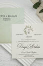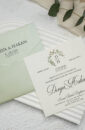 Descoperă rafinamentul și naturalețea în fiecare detaliu al invitației noastre de nuntă. Realizată dintr-un carton mat, această invitație îmbină subtilitatea cu eleganța, având detalii florale delicate în partea de sus, ce aduc un aer proaspăt și romantic. Plicul verde sidef completează armonios designul, oferind o notă de prospetime și farmec. Invită-i pe cei dragi să se alăture bucuriei căsătoriei voastre printr-o invitație care încântă ochiul și inima în egală măsură.